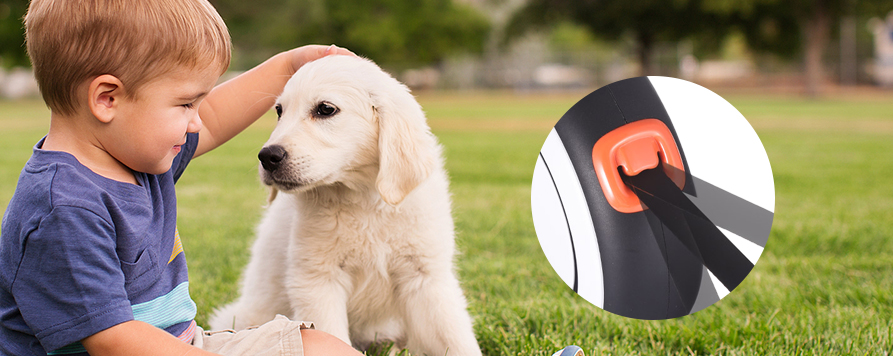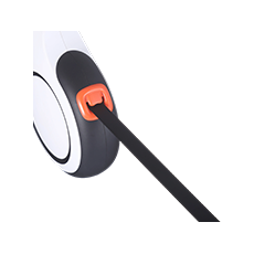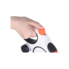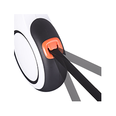 • O mecanismo de travamento de um botão é elegante e conveniente. Com um simples toque, a guia trava com segurança, evitando que seu animal corra para frente ou puxe para trás. O botão é suave e sensível, garantindo que não haja emperramento ou aderência, e o design do gatilho descendente torna a operação fácil e rápida.