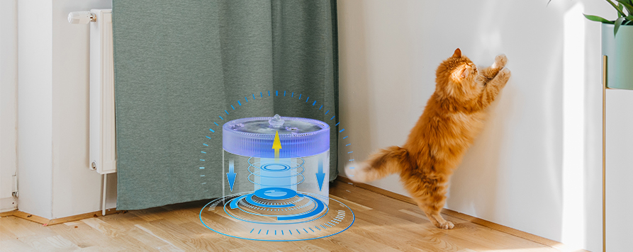 • O sistema de filtragem circulante da fonte apresenta um design de purificação completo de 360°. A água circula continuamente dentro da máquina, removendo efetivamente impurezas, odores e bactérias, garantindo que a qualidade da água permaneça consistentemente fresca e pura. A função de purificação ininterrupta 24 horas garante que os animais de estimação tenham sempre acesso a água fresca e saudável, aumentando assim a ingestão de água e prevenindo eficazmente problemas do trato urinário e desidratação.