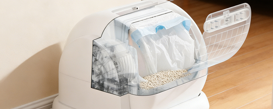 • Esta caixa de areia inteligente e autolimpante para gatos foi projetada para famílias que possuem animais de estimação, com foco na praticidade e conveniência para tornar o gerenciamento diário da areia mais fácil e confiável. O produto utiliza materiais compósitos PP e ABS como estrutura principal, oferecendo estabilidade, durabilidade e fácil limpeza. Mesmo com uso prolongado, pode manter boa aparência e desempenho funcional. A estrutura interna da caixa sanitária é otimizada para garantir uma experiência natural e confortável aos gatos ao entrar e utilizá-la, reduzindo a resistência de gatos sensíveis ao enfrentar um novo dispositivo.