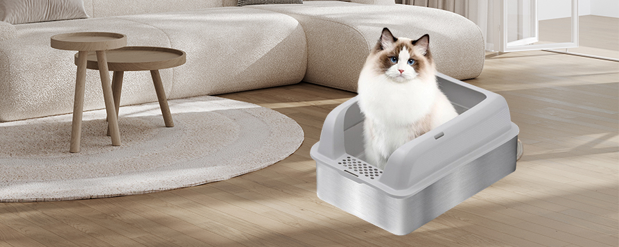 • Caixa de areia para gatos à prova de respingos de aço inoxidável