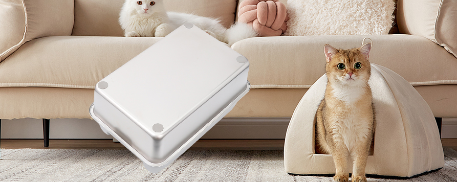 Lar / Produtos / Produto de banheiro para gatos / Caixa de areia para animais de estimação em aço inoxidável / Caixa de areia para gatos à prova de respingos de aço inoxidável